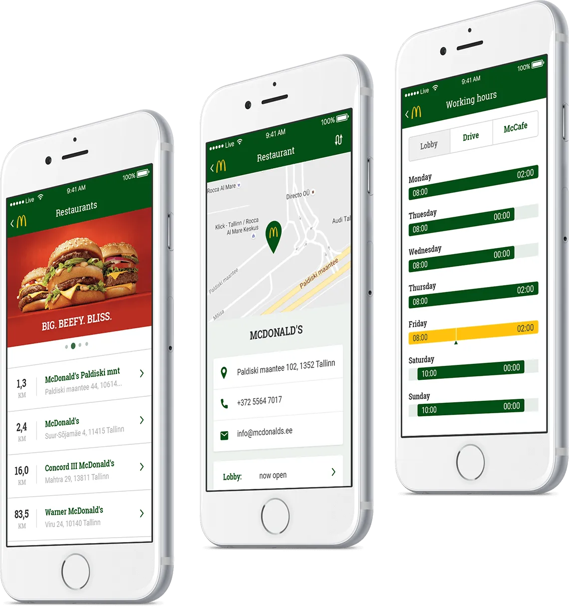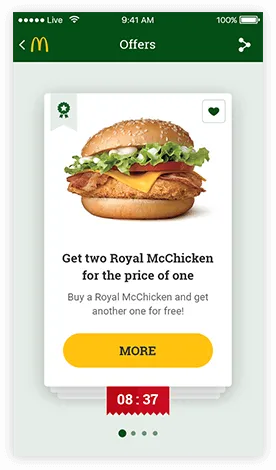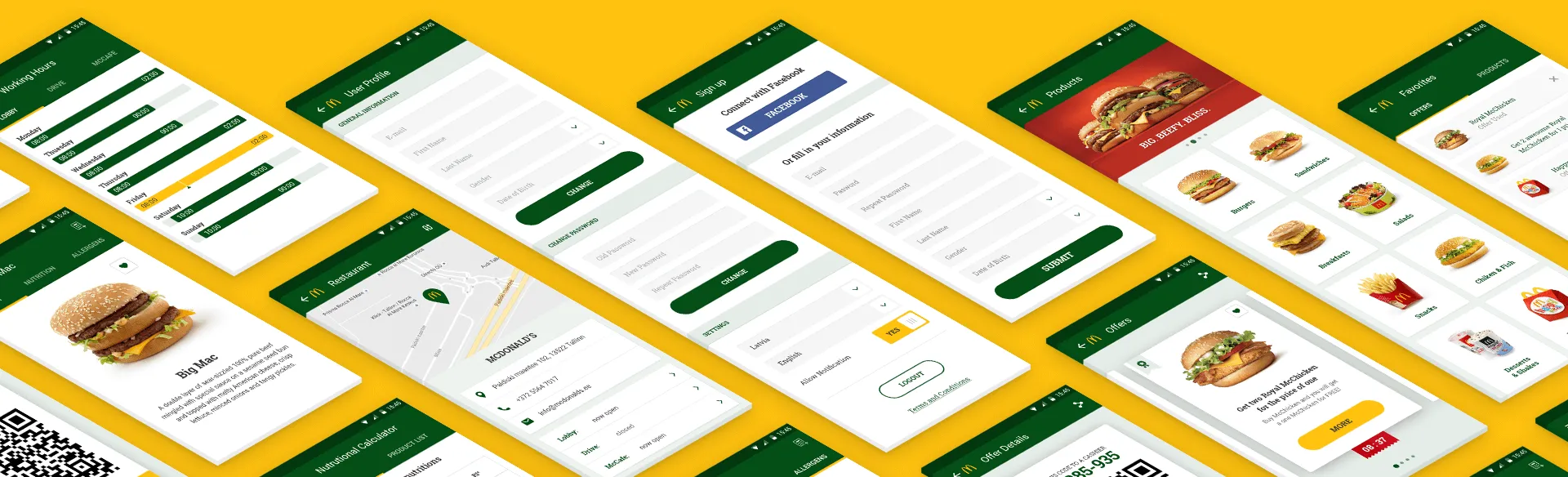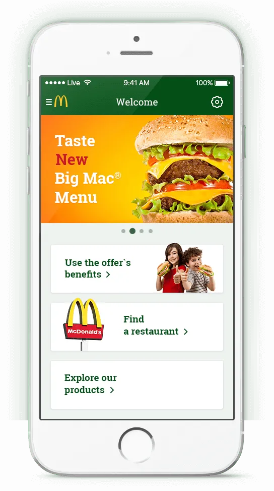 McDonald’s Baltics is a mobile loyalty app for customers of the brand in Lithuania, Latvia and Estonia. Its main purpose is to offer users personalized deals, provide information about new promotions, products, and nutritional values. As well, users can always find a detailed description of all McDonald’s restaurants in the region and access McDonald’s customer service.